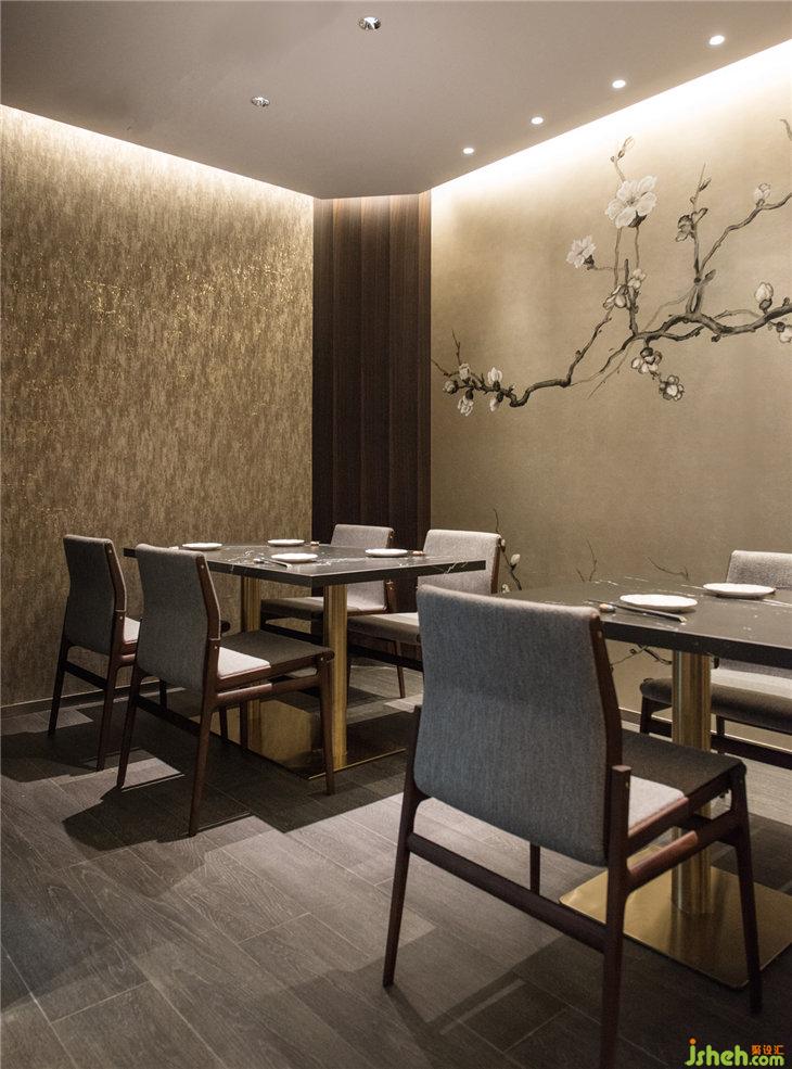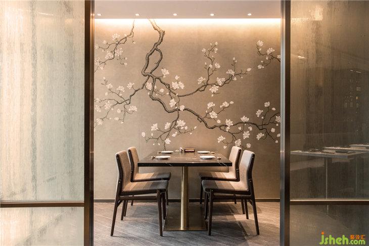餐廳定位高端客群,為了打造更高尚的用餐環(huán)境,而又不失私密性,特別安排了多個包間,空間分割上采用了定制的玻璃移門,玻璃采用鐳射雕刻技術,使玻璃呈現若穩(wěn)若現的半透明布紋效果,讓包房區(qū)與就餐開放區(qū)的分界更為靈活。