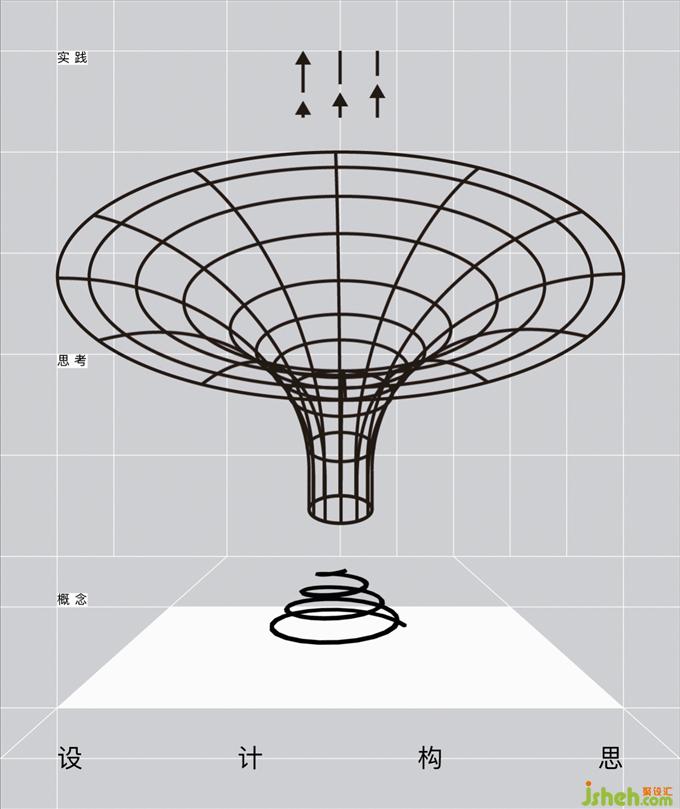 在隱藏?zé)艄庵?,利用金屬的未來感,形成一個(gè)時(shí)空漩渦,暗示創(chuàng)意在漩渦中集合并引發(fā)更多有趣的思考。