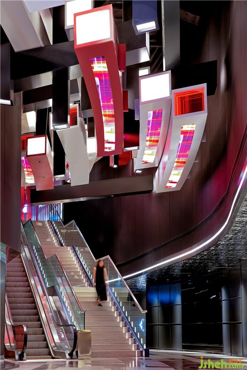 設(shè)計(jì)以「放大鏡中的微觀世界」為主題,OFT香港電影院設(shè)計(jì)通過對(duì)三維城市進(jìn)行二維想象與思考,將大小不一、深淺不同的像素進(jìn)行解構(gòu),同時(shí)以一種全新尺度重塑屏幕里的空間。