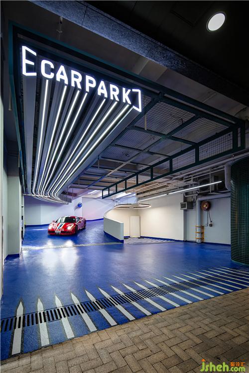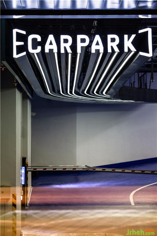 入口處承擔(dān)著業(yè)主對車庫的第一印象的作用,為增強序列化的儀式感,設(shè)計師為車庫設(shè)計了獨有的LOGO,并用連續(xù)的LED燈帶創(chuàng)造出空間的無限延伸感,LOGO既作為獨特的空間標志,又成為引導(dǎo)性照明,指引著車主進入,提升車主內(nèi)心歸屬感。