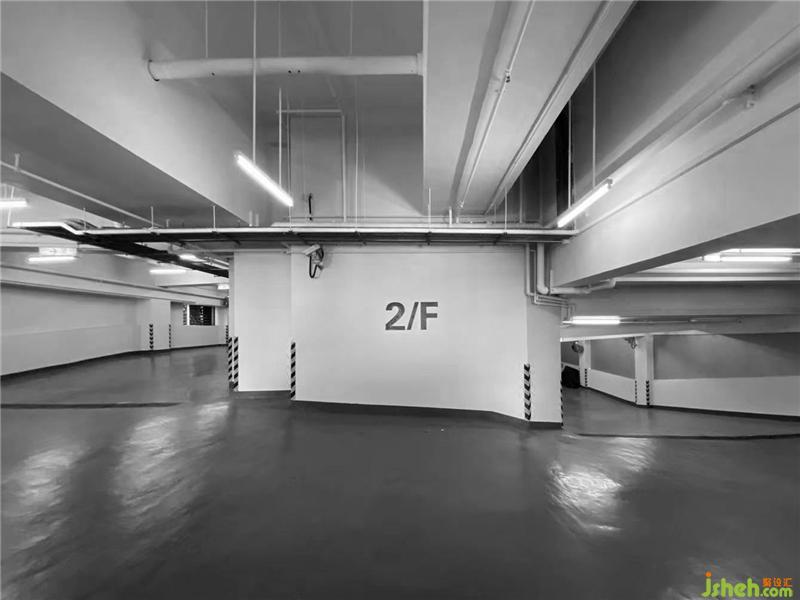 改造前:大面積的灰色地坪漆,易產(chǎn)生視覺疲勞,且地面車行劃線不清晰,導(dǎo)致車輛在車庫(kù)中迷失。