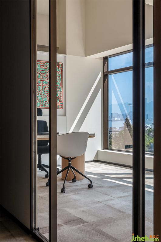 最后,在私密辦公區(qū)中,設計師用大面積玻璃窗將自然光源引入室內(nèi),透明的玻璃門,讓整個區(qū)域視野更為開闊。