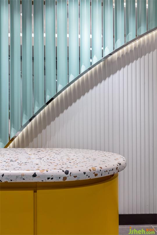 進入影廳區(qū),黃綠撞色在這里得到延續(xù),設計師用快樂美學提醒影迷,卸下生活的盔甲,復活感受能力。