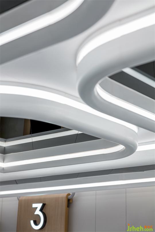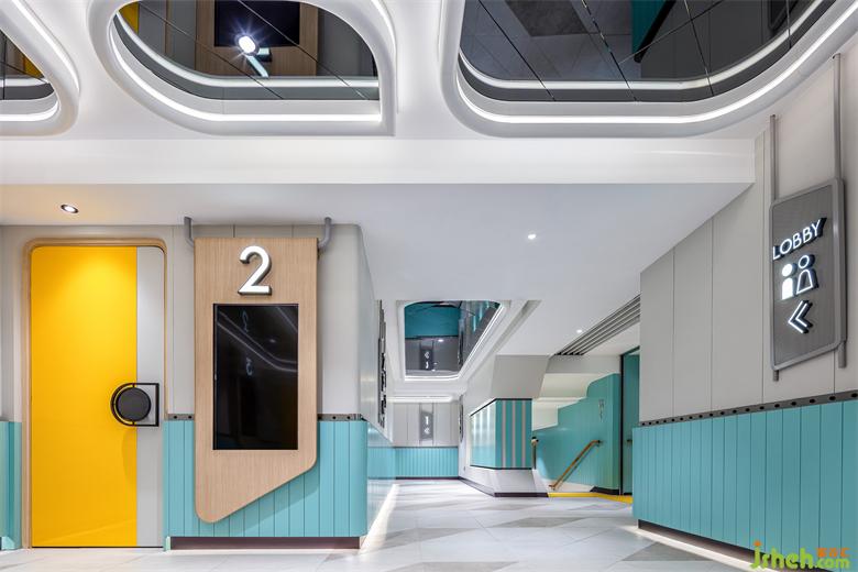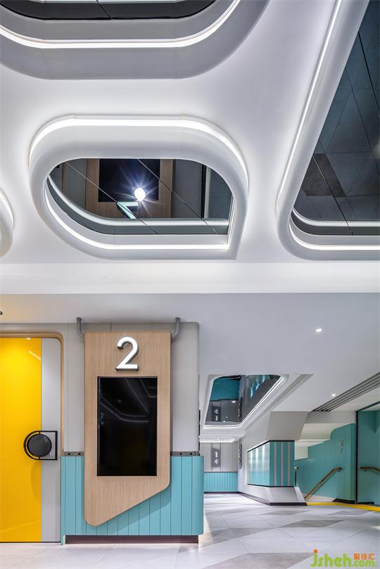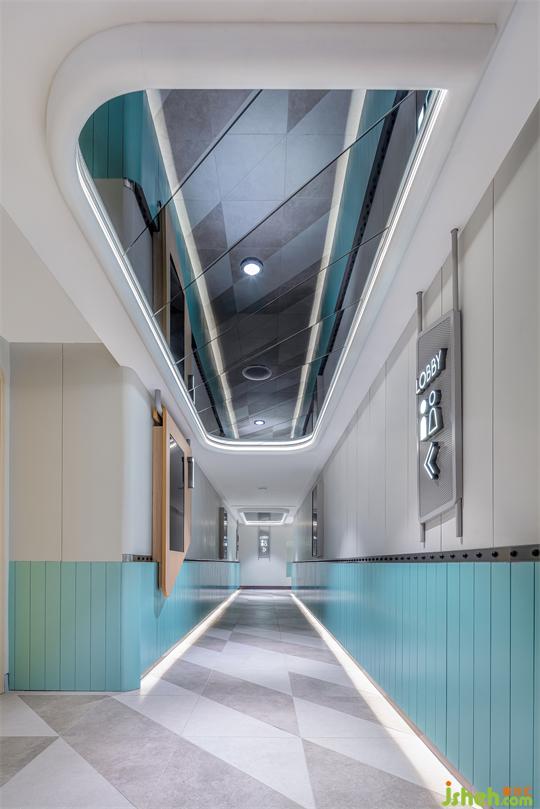 水滴狀鏡面天花貫穿整個公區(qū),首先從視覺上解決層高低矮問題,同時造型與露營車透明棚頂呼應(yīng),仿佛打開它就能探出身子去大聲吶喊、與風(fēng)和自然相擁,以空間喚醒感受。