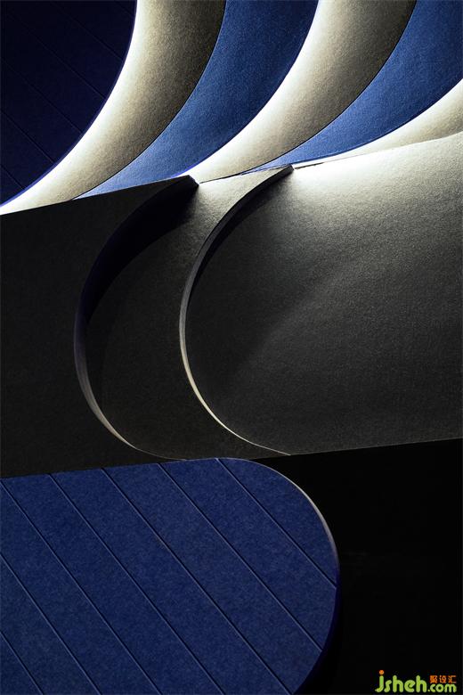 影廳依然沿用水滴元素,藍色和紫色的造型墻,將我們的意識與潛力帶到更高的境界。從探索新科技與更浩瀚的銀河,到藝術性的表達與精神思考,直覺式的紫色照亮通往未來的道路。