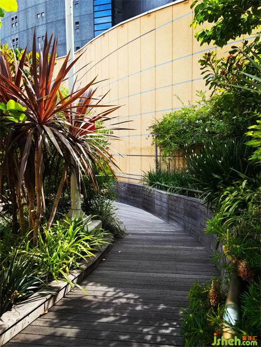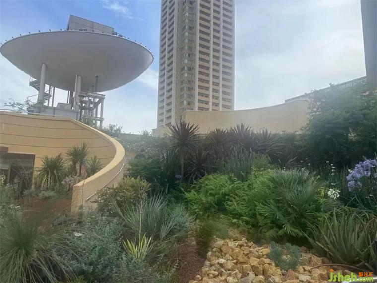 難波公園彰顯了一種自然生態(tài)的生活方式,空中花園、屋頂綠樹,公園直接跟大街相連,為鋼筋混凝土林立的城市里帶來(lái)了一股清新的氣息。人們可以欣賞成群的大樹、巖石、懸崖、草坪、溪流、瀑布池塘及露臺(tái),人們徜徉在空中花園中盡享體驗(yàn)式購(gòu)物的樂(lè)趣。遠(yuǎn)看該建筑是一個(gè)斜坡公園,從街道地平面上升至8層樓的高度,層層推進(jìn)、綠樹茵茵,仿佛是游離于城市之上的自然綠洲,與周圍線形建筑的冷酷風(fēng)格形成強(qiáng)烈對(duì)比,成為嘈雜背景下的一處生動(dòng)、溫馨的街景。