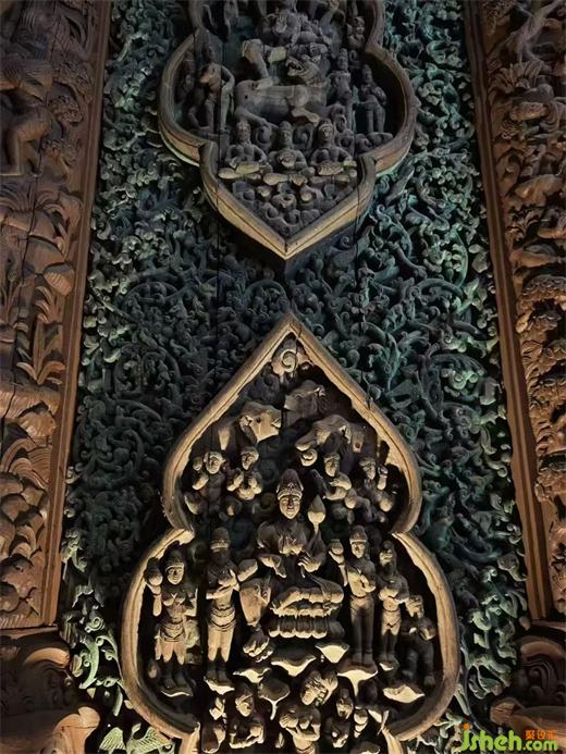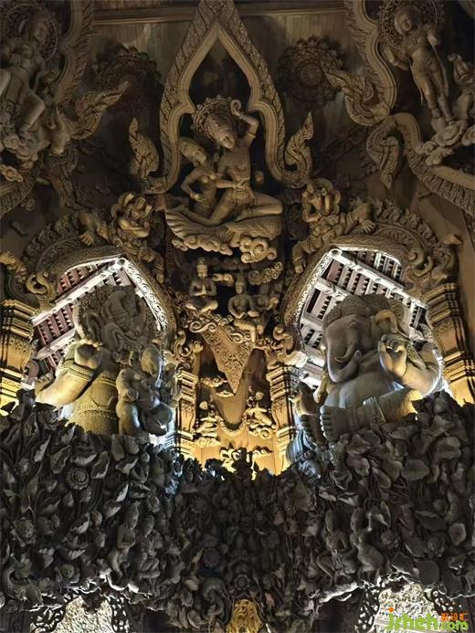真理寺是世界上最大的純木雕宮殿,總高超過(guò)100米,寺內(nèi)的木雕藝術(shù)堪稱一絕,精美而復(fù)雜的雕工被大批量地應(yīng)用于大大小小的各種佛像和浮雕之上,由于純木質(zhì)原料難以避免會(huì)受到歲月和風(fēng)雨的摧殘,真理寺至今仍然在不斷修建完善之中,呈現(xiàn)出一種“永不完工”的狀態(tài)。