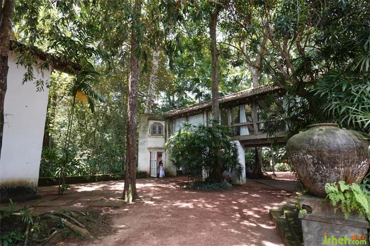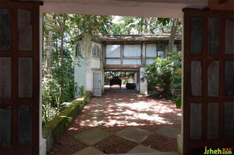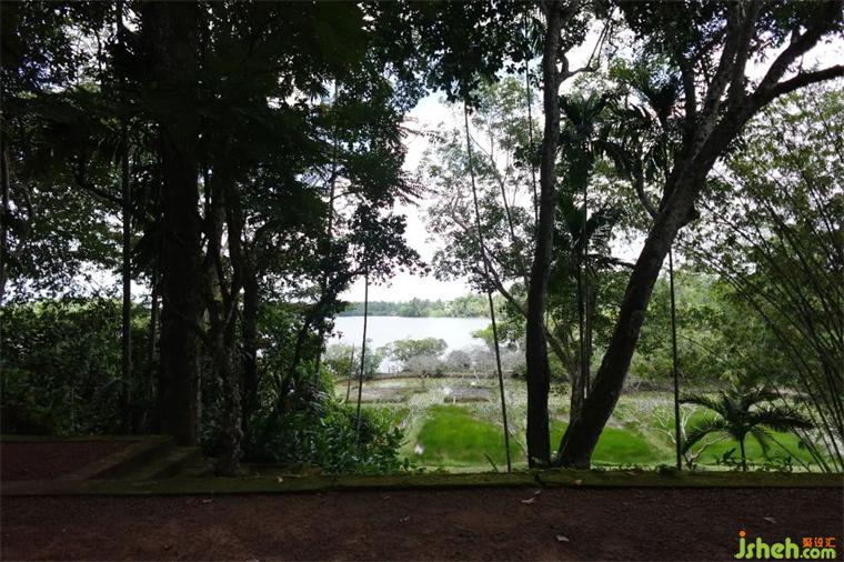 盧努甘卡巴瓦莊園是巴瓦的精神家園、靈感源泉和創(chuàng)作試驗(yàn)場(chǎng),每有創(chuàng)意和構(gòu)思他都會(huì)在這里進(jìn)行嘗試和驗(yàn)證。莊園占地9萬平米,原來是栽滿橡膠樹的山林,如今依然有大量的橡膠樹駐留外圍,景色絕美。這里也是巴瓦的靈魂歸宿——他的骨灰最終也撒在了這片土地上。