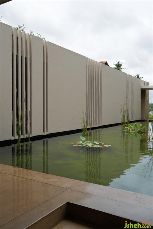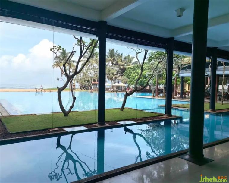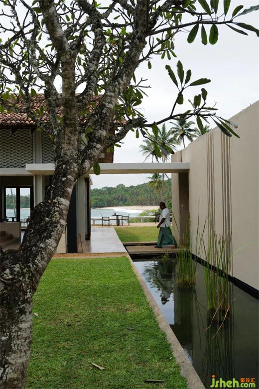 坎達(dá)拉瑪遺產(chǎn)酒店四面都是植被,建筑外觀被植被覆蓋,堪稱“消失的建筑”,巴瓦將建筑與環(huán)境融為一體的理念展現(xiàn)得淋漓盡致。酒店的客房部分很注重材質(zhì)和陳列,沒(méi)有造型和色彩,空間自然質(zhì)樸,溫馨放松。時(shí)而還有小猴子來(lái)陽(yáng)臺(tái)玩?;?dòng)!整個(gè)酒店公共區(qū)域和走廊看不到一副裝飾畫(huà),巴瓦認(rèn)為周圍的巖石、森林、水等自然就是畫(huà)卷。