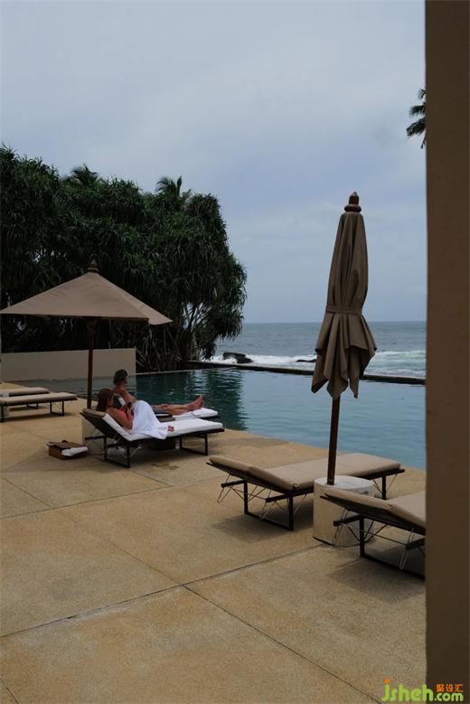 這里的房間布局很打動(dòng)我:玻璃推拉門(mén)完全打開(kāi)后整個(gè)房間變成一個(gè)流動(dòng)的空間,一邊對(duì)著泳池,一邊對(duì)著海,馬桶間正對(duì)海景,將海景框起,坐在這里絕對(duì)是一種享受因。