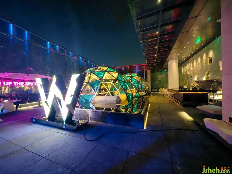 印象比較深是禾七餐廳的水波紋的燈光設計,