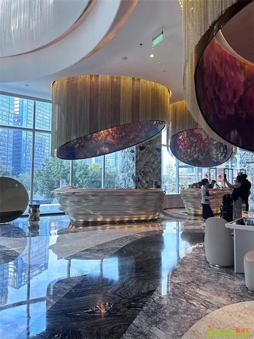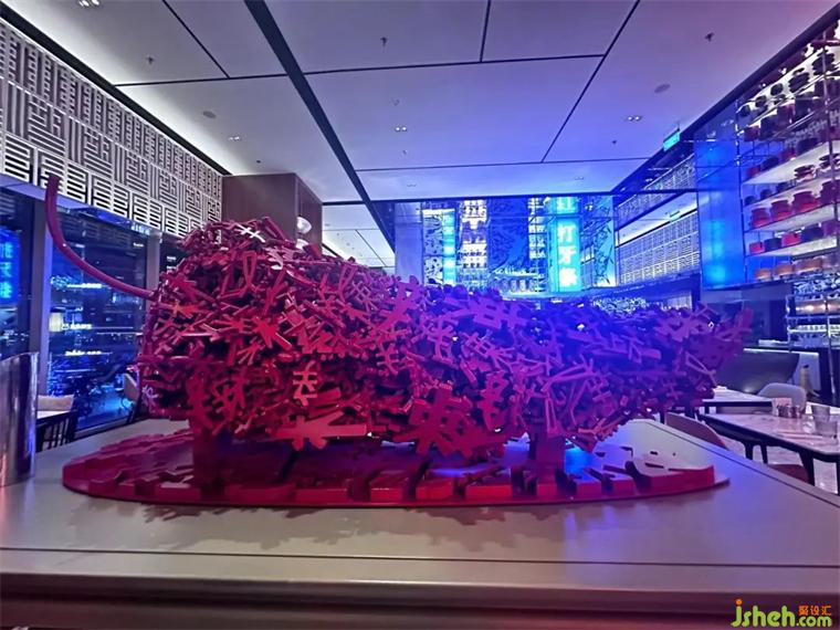 入住的酒店,君悅酒店、W酒店、希爾頓嘉悅里酒店,不同的酒店帶給我截然不同的體驗,它們都擁有獨特的設(shè)計風(fēng)格,但令我印象最深刻的還是 W 酒店。剛進入接待大堂,那種時尚之美便撲面而來,從空間感,到材質(zhì)的運用,再到軟裝家具的擺設(shè),無不讓人眼前一亮。特別是接待吧臺上的裝飾吊頂,運用色彩鮮艷的馬賽克拼接而成的獨特造型,更是令人過目難忘。入住的客房也非常出色,衛(wèi)生間隔斷的弧形線條造型和吊頂造型都采用了弧形的設(shè)計手法,別具一格。我還參觀了總統(tǒng)套房,可愛的大熊貓無疑是一個記憶點,我忍不住給了它一個大大的擁抱,然后與之合影留念。這個空間的每一處設(shè)計都充滿了細(xì)節(jié),這些細(xì)節(jié)都可以運用到家居設(shè)計或商業(yè)空間中。W餐廳的設(shè)計,結(jié)合了成都的設(shè)計元素,辣椒的大擺件,文字分解做的造型,臉譜的元素,都在這個空間運用到。