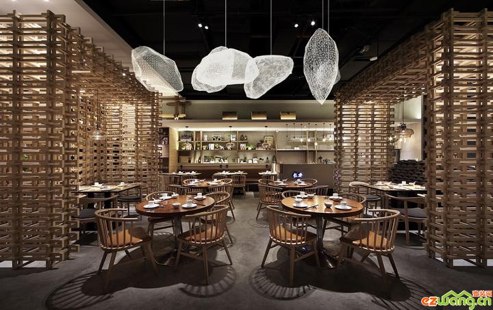 在空間設(shè)計上,本案既延續(xù)及強調(diào)了炭舍的“舍”之結(jié)構(gòu),設(shè)計師從傳統(tǒng)建筑與藝術(shù)中尋找靈感,以“舍”為主題,將房舍構(gòu)件中的梁、柱、窗、門提煉出來為空間立型,以簡化的手筆搭建出一個屋舍儼然、其樂融融的用餐場景,同時融入炭舍最新的品牌定位,打造出一個簡潔溫馨、質(zhì)樸自然的用餐空間。