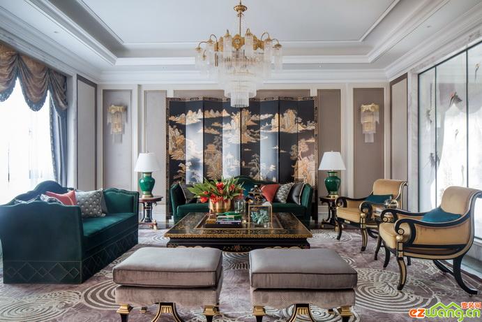 設(shè)計(jì)的表現(xiàn)形式從來(lái)不需拘泥于一格。法式的纖巧、精美,有一種不懂聲色的華麗,而東方式審美習(xí)慣在大繁若簡(jiǎn)之間靈活轉(zhuǎn)動(dòng)。對(duì)現(xiàn)代感與東方美的平衡把握,是這例設(shè)計(jì)作品最考驗(yàn)匠心之處。