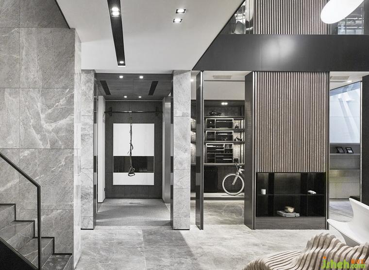 功能上,室內(nèi)設(shè)計師將原有樓梯位置改動到另一個位置,這個改動除了將客廳部份加以擴大外,更使其他房間實用率提高,除了為兩兒子提供房間外,更能夠為女兒及其外婆。提供寛敞的套房而主人房更是獨占全層,內(nèi)設(shè)有空中花園,衣帽間,影音室等設(shè)施。由于三個小朋友均在求學(xué)階段,設(shè)計師特意將地窂改成相連花園的閱讀室,原有的花園因而被一道高墻所阻隔,光線不能進入地牢,設(shè)計師特意將這個高墻拆掉改成為一道藝術(shù)裝置的樓梯連貫上下兩個花園,使陽光順利進入閱讀室。窗戶的另一面則改成酒窖,酒窖內(nèi)可擺放500支以上收藏。