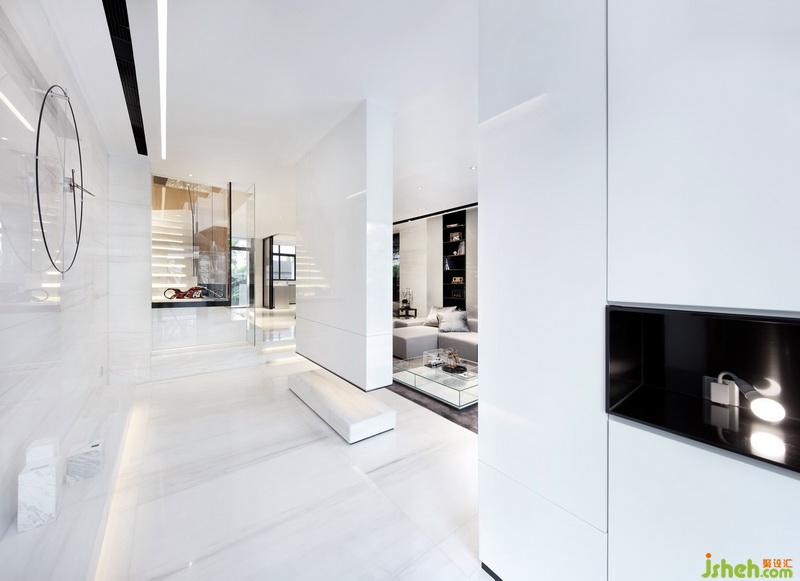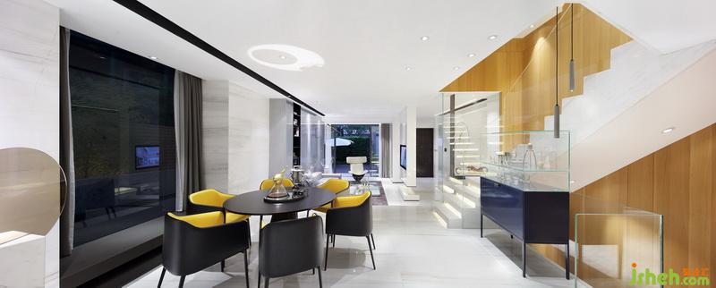 設(shè)計意念上,室內(nèi)設(shè)計師以幾何作為設(shè)計藍本,貫穿外型及室內(nèi)空間,并特意用矩形作建筑外形,弧形線條作室內(nèi)空間。而材質(zhì)上則以自然物料作主調(diào),包括使用木材,云石作墻身及地板,并配以草墻作點綴使到整間屋散發(fā)著自然氣息。