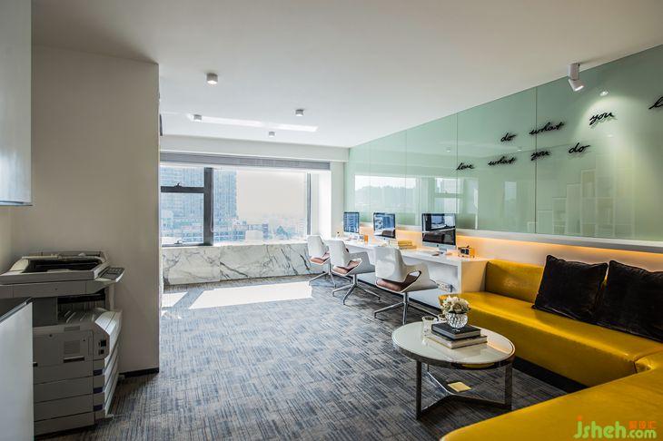 作品簡介:該辦公室設計是小型的國際貿(mào)易辦公場所,高端品牌形象定位,辦公室設計小型辦公商貿(mào)洽談客戶,傳達一種科技、現(xiàn)代的理念,整潔、略帶科技感的天花、墻面,在多邊形的圖案符號下顯得舒寧、靜逸。