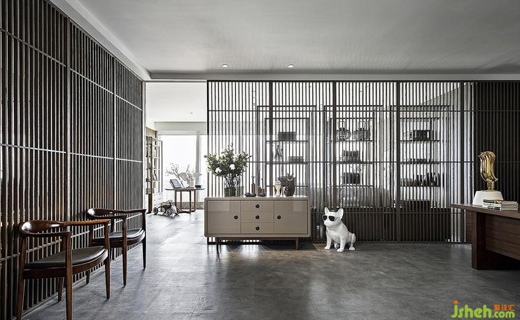 作品簡介:空間的形式做到了極簡,沒有任何多余裝飾,橡木豎向格柵、乳膠漆墻、半透明玻璃移門、平頂天花、開放式天花、橡木飾面的柜子及門扇概括了所有的造型。通過這些簡單的形式,我們營造出通透流暢的空間,空間可以通過格柵門及玻璃門開放或密閉,從而滿足不同的使用需求。豎向格柵使得空間具有了多層次的穿透與流動,讓路徑串聯(lián)的每一個獨立空間可以借由半透明玻璃門產(chǎn)生視線上的交叉,而視覺的穿透還保證了空間的連續(xù)性。走廊和辦公區(qū)用格柵書架作為隔斷,整齊疊放的書籍與辦公桌上的植物使辦公環(huán)境更加輕松舒適。