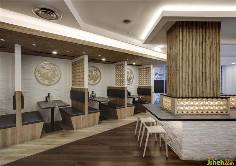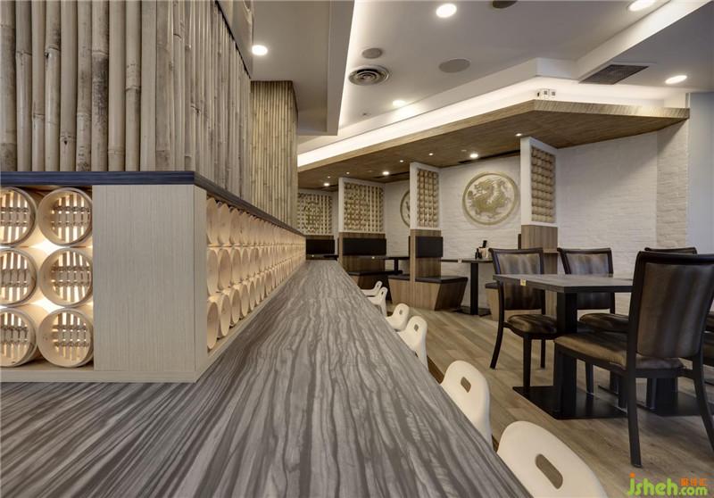 作品簡介:包今天這個品牌源自古代傳奇人物包青天的諧音,是一家新加坡出售各種點心的美食連鎖店。名字中也包含著其企業(yè)精神,為了強調所有的包都是今天新鮮制成的。在此企業(yè)文化的基礎上運用模擬延伸的方式,將包青天的傳統(tǒng)元素通過新穎的手法表現(xiàn)在室內設計上,帶來新的用餐體驗。將古時公堂的圖案,變化成區(qū)分用餐區(qū)域的標記。而蒸點心不可少的蒸籠,被組合和設計成趣味橫生的屏障,為空間增添一些幽默趣致。