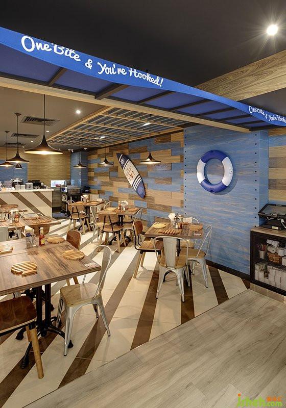 作品簡介:自覺身負著提供最新鮮漁獲的使命,類似漁人碼頭的空間設計讓食客對客戶的品牌價值有更深刻的認同。漁夫的碼頭普遍被認為是漁船停靠和漁夫暫時堆積雜物的場所,新加坡SODA設計事務所重新將這個形象轉換成可以即時品嘗最新鮮海產的一種印象連接。半開放式的座位設計也讓食客感受類似坐在碼頭旁邊用餐邊觀察人流的一種趣致體驗。