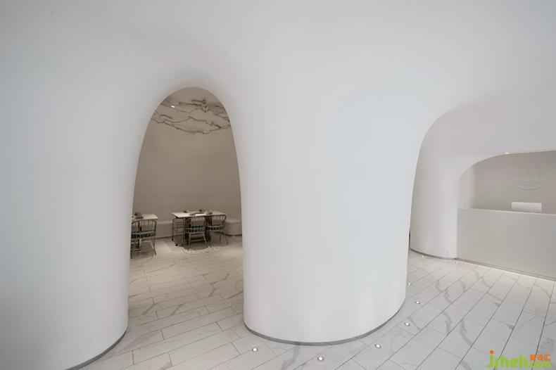 作品簡(jiǎn)介:這是一家以海南椰子和文昌雞為特色的火鍋店。設(shè)計(jì)師用最純粹的手法,營(yíng)造出了充滿想象和驚喜的餐廳環(huán)境。設(shè)計(jì)的靈感源于椰果,步入空間,立即被這個(gè)巨大的白色“洞穴”吸引,這里完全不像是一個(gè)傳統(tǒng)感覺(jué)中的火鍋餐廳,仿佛置身于一個(gè)個(gè)掰開(kāi)的椰子,奶白色無(wú)序圍合的三維曲面,如一片片誘人的椰肉,連綿如洞穴般的造型,渾然一體,讓空間極具張力,從視覺(jué)和觸覺(jué)上都刺激著食客的神經(jīng),這一切正如主人提供的食材一樣:純粹、天然、健康。