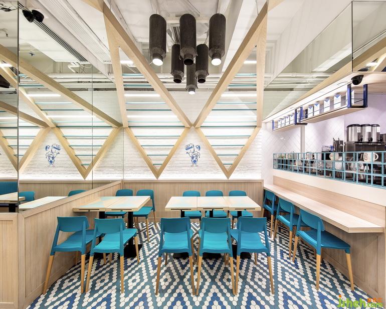 作品簡(jiǎn)介:門(mén)面設(shè)計(jì)以類(lèi)似的木材為主題,外賣(mài)窗口則以金屬郵箱為點(diǎn)綴。室內(nèi)設(shè)計(jì)師在餐廳的盡頭擺放以清鏡飾面的儲(chǔ)存柜,一來(lái)可避免觀(guān)感凌亂,二來(lái)又可給予空間無(wú)限延伸的感覺(jué)。