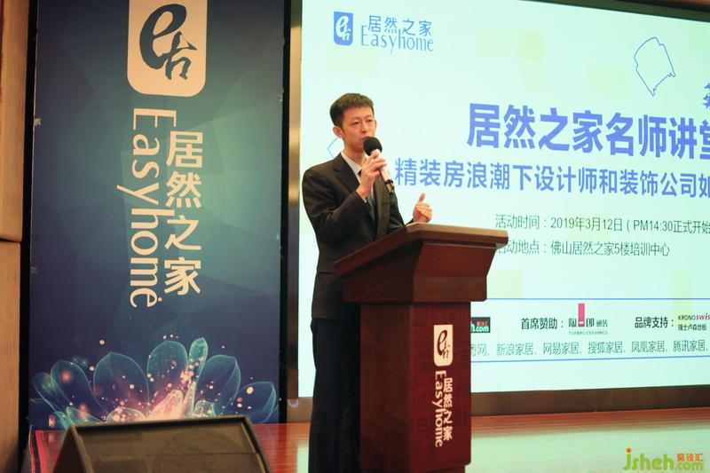 新加坡BRANDER設(shè)計顧問咨詢(佛山)有限公司左君作為本次活動的主持人,圍繞本次活動主題“精裝房浪潮下設(shè)計師和裝飾公司如何面對?”作開場發(fā)言。他表明,這幾年時間,各大知名地產(chǎn)商已經(jīng)完成了精裝修設(shè)計產(chǎn)品線的研發(fā)和迭代,大型房企的全裝修比例甚至已經(jīng)達到了80%以上。隨之而來的,各位設(shè)計師也應當需要思考,在這種趨勢的背后,身為家裝設(shè)計師的我們?該如何去應對?
