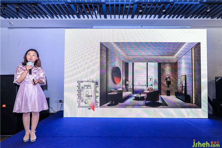 空間設(shè)計是通過人的視覺、聽覺、觸覺、嗅覺、味覺而為人感知,而其中,人們從視覺上感知外界信息占到83%,因此光線對于室內(nèi)設(shè)計尤為重要。光又因其可見性、色溫、顯色指數(shù)不同在設(shè)計中呈現(xiàn)出多樣的可塑性。同時光的線性傳播原理,使得點光源、面光源、線光源在設(shè)計運用更加廣泛。當(dāng)然在注意光線運用的同時,物體的顏色也很重要,因為材質(zhì)物體本身的顏色才是本質(zhì)。在介紹了光的基本原理之后,她結(jié)合自己的作品,向在座的設(shè)計師分享自己運用光線的心得體會。