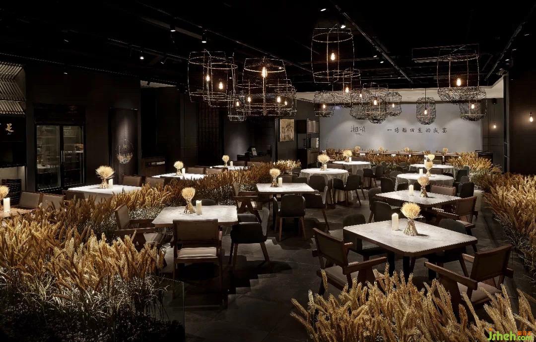 餐廳內(nèi)高仿真的稻田錯落分布,將餐桌環(huán)繞其中,樸實(shí)低調(diào)的灰磚地面襯以專業(yè)的燈光設(shè)計(jì),舉目望去宛若置身秋日豐收現(xiàn)場,充滿自然美感。