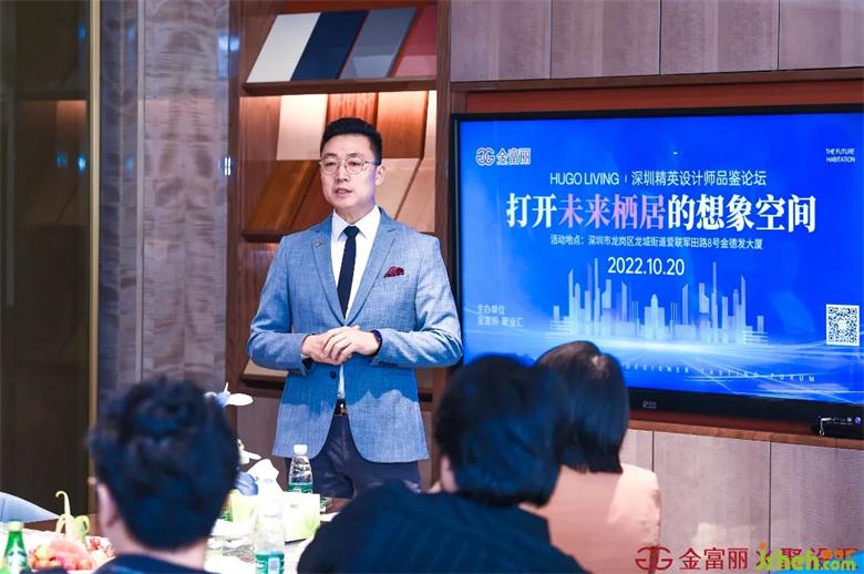 10月20日,聚設(shè)匯繼“市場對設(shè)計師的裹挾與機(jī)遇”康麗根凈水(Culligan)高端主題論壇后,再度聯(lián)合金富麗活動金富麗家居HUGO LIVING 于深圳龍崗軍田路8號金德發(fā)大廈舉行“ 打開未來棲居的想象空間 ”精英設(shè)計師品鑒論壇。聚設(shè)匯裝修平臺創(chuàng)始人徐賓賓、漢風(fēng)軒文化創(chuàng)始人&設(shè)計總監(jiān)周永濤、美墅裝飾設(shè)計創(chuàng)始人&設(shè)計總監(jiān)李宏浩、金富麗家居HUGO LIVING品牌高級合伙人&設(shè)計師余文斌等出席活動。